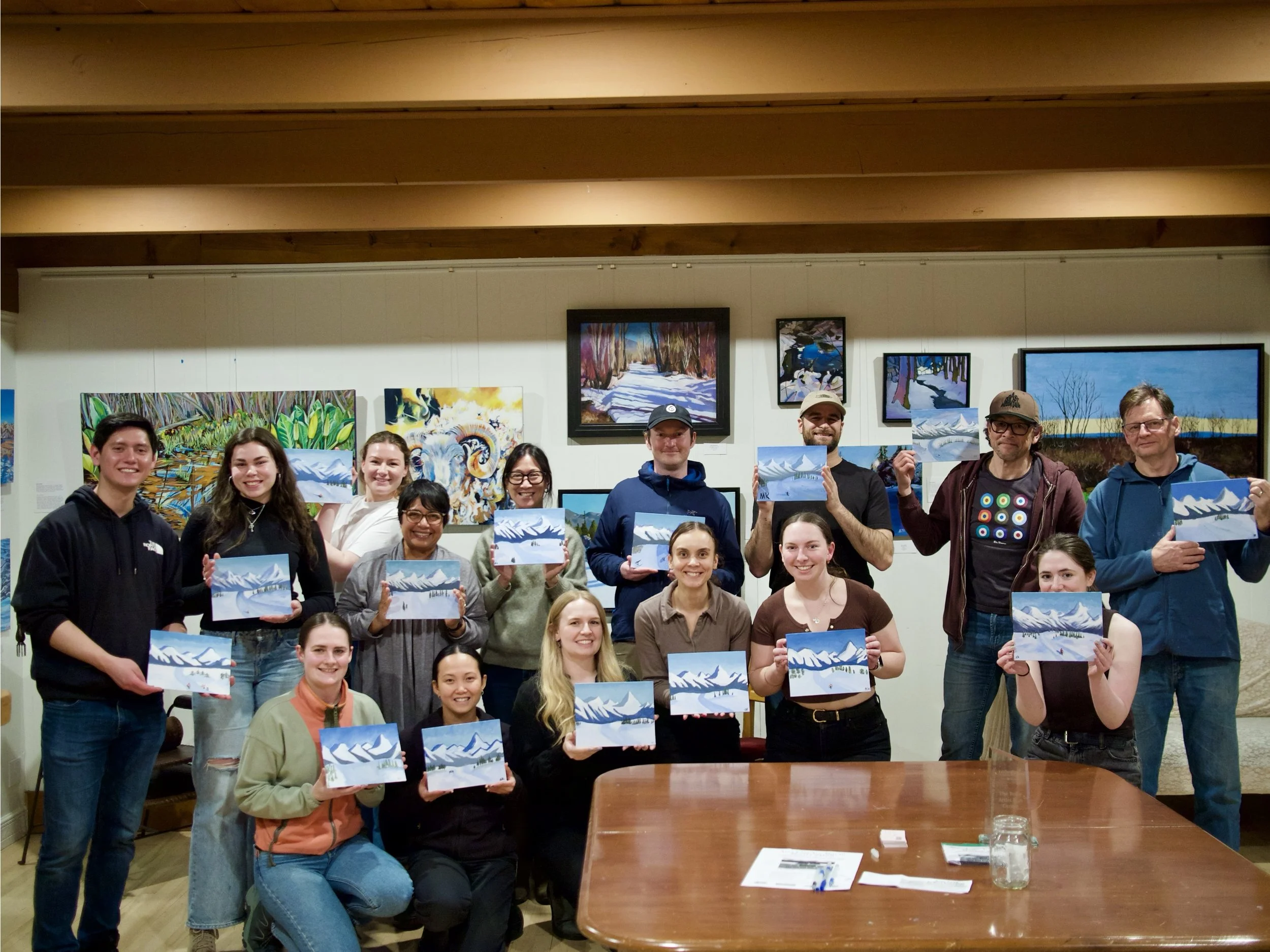 Join one of my upcoming painting classes in Whistler! All artistic abilities are welcome and encouraged at Paint & Sip. Come spend an evening painting the iconic landscapes of the Sea to Sky. Hosted at The Point Artist Run Centre, on Alta Lake.